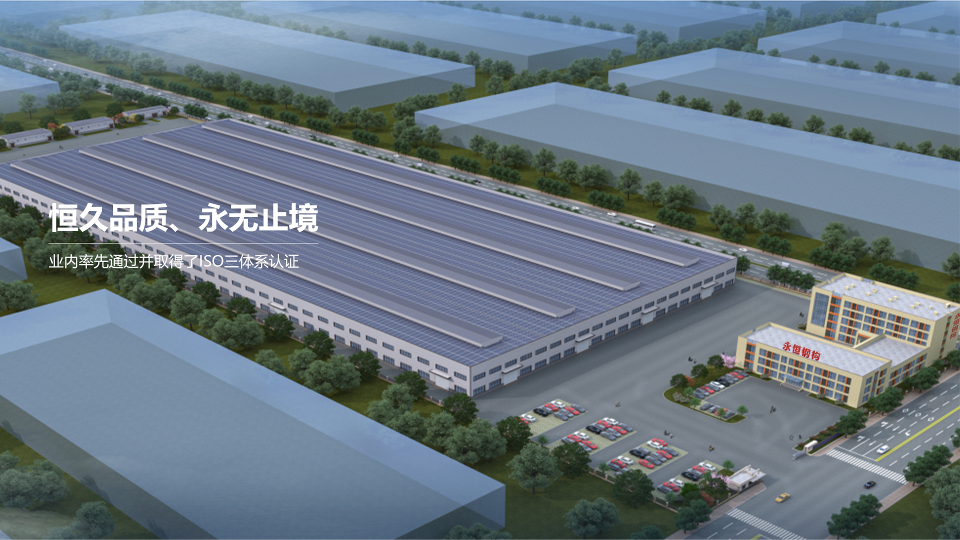 杭州永恒鋼結構有限公司(簡稱永恒鋼構),是一家集設計、制造、安裝、售后服務為一體,從事輕鋼結構、多高層鋼結構、空間大跨度鋼結構、鋼橋梁結構、管塔結構、鋼結構鍍鋅等六大體系的專業鋼結構承建商。具有國家鋼結構工程專業承包壹級資質,在業內率先通過并取得了ISO9001:2015質量管理體系認證、ISO14001:2015環境管理體系認證、ISO45001:2018職業健康安全管理體系認證。并有多項鋼結構工程榮獲行業金獎,公司是中國鋼結構協會、浙江省鋼結構協會會員單位。